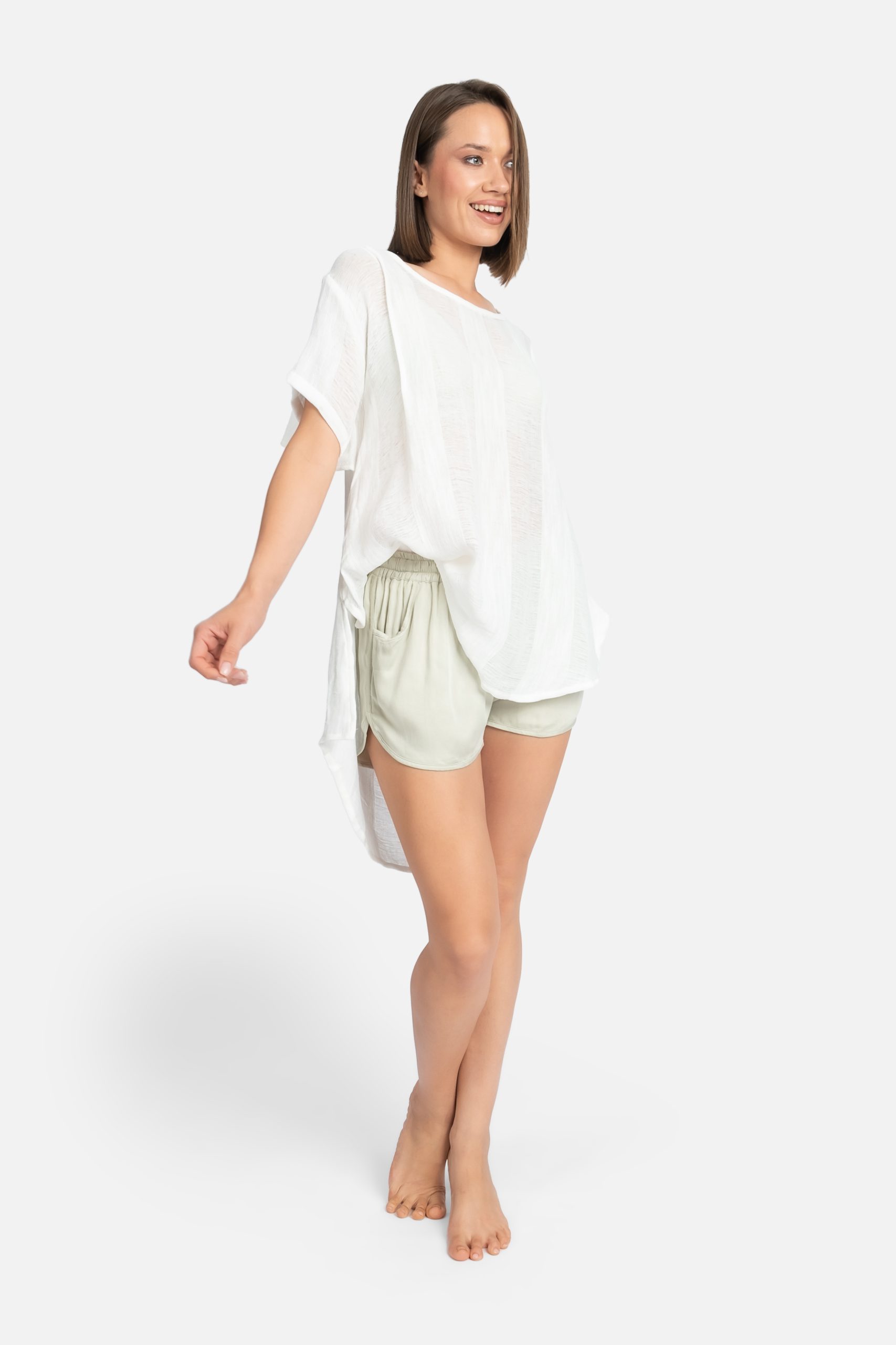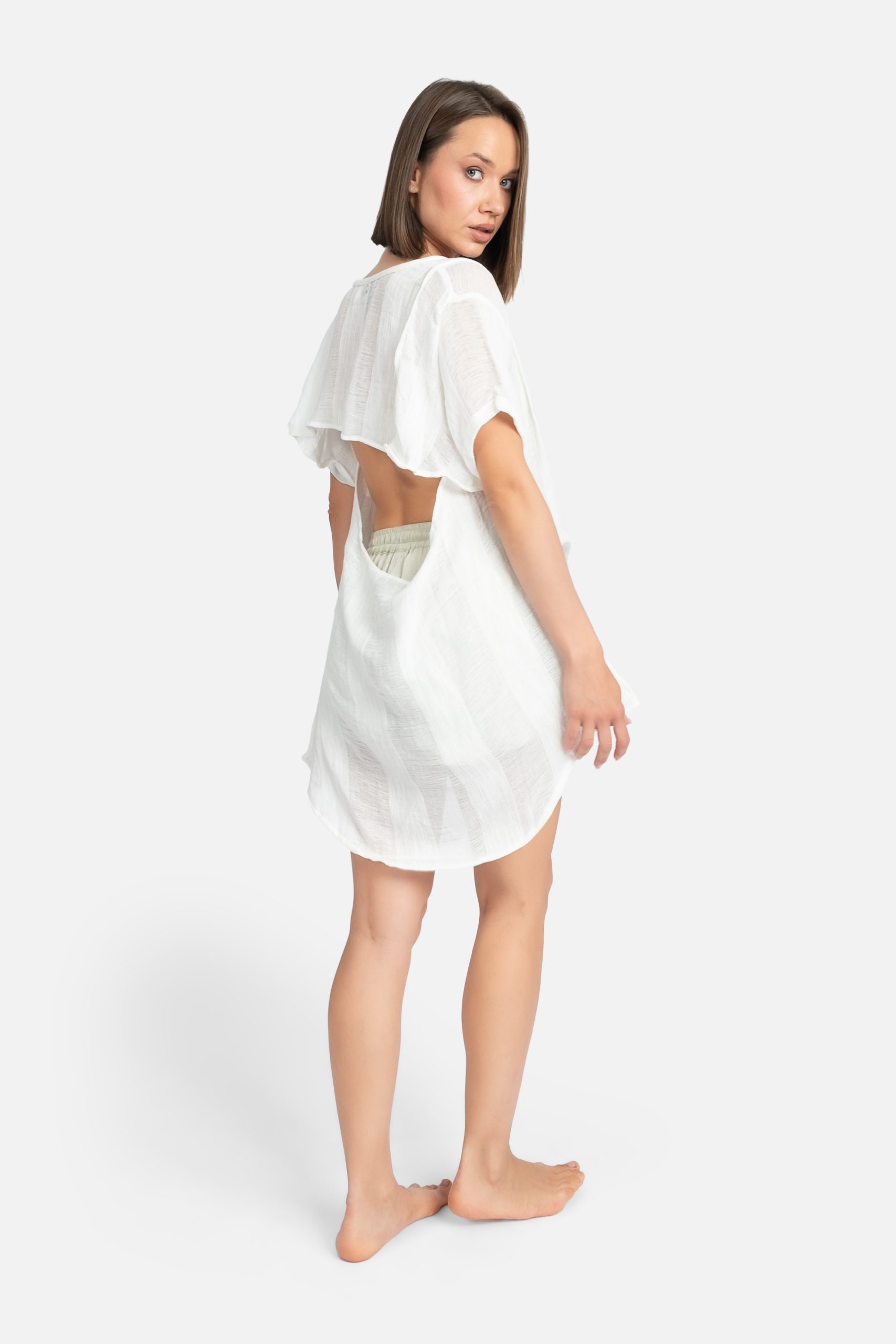 SIRTI AÇIK TİŞÖRT – İPEK KETEN